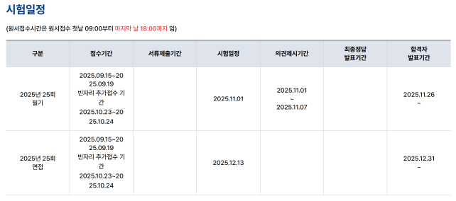 • 전년도 1차 합격 후 2차에서 불합격한 경우, 다음 시험에서 1차 필기 면제