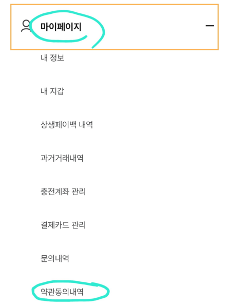 3) 아래쪽의 ‘약관동의내역’ 선택