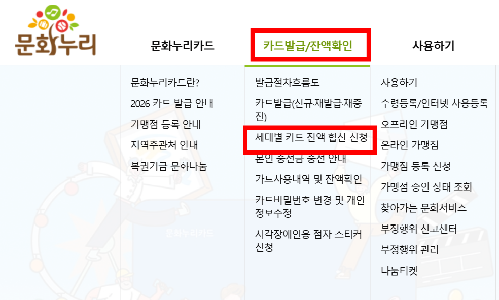 2026 문화누리카드 합산