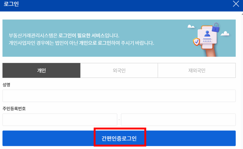 - 부동산거래관리시스템 또는 부동산 전자계약시스템 접속