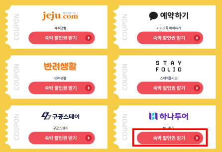 수많은 제휴 여행사 중 원하는 것을 하나 고릅니다. 예를 들어 하나투어에서 쿠폰을 받는다고 해보겠습니다.
