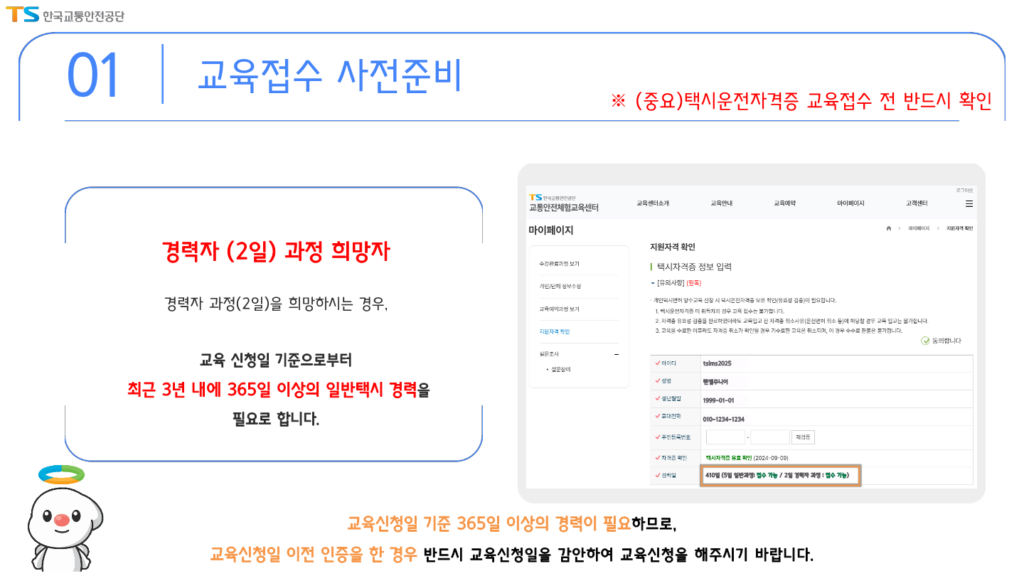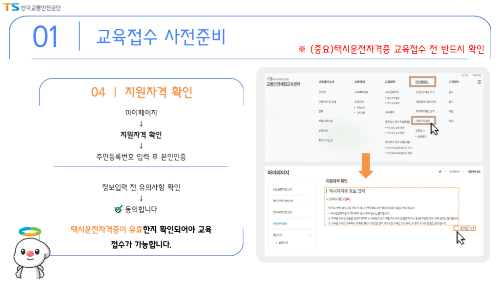 - 교육 입교 시 신분증·택시운전자격증 필수 지참